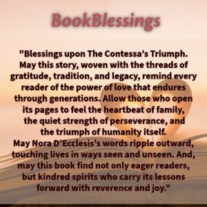 BookBlessing for Nora D’Ecclesis THE CONTESSA’S TRIUMPH Posted on by Pat https://www.speakuptalkradio.com/wp-content/uploads/2025/10/BookBlessings-Nora-Serious-Inspiring.mp3 VISIT THE WEBSITE VISIT AMAZON